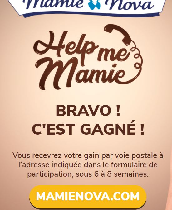 Cadeau gagné : 1 coffret de 8 produits au chocolat Mamie Nova + 1 soin bien-être