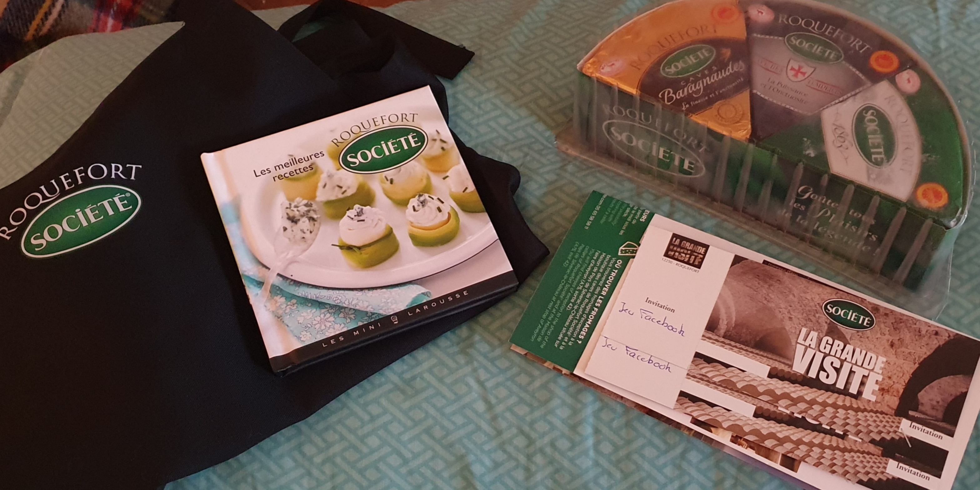« Le 15 décembre j'ai remporté un lot société crème comportant un tablier, un livre, un lot de 3 roquefort société et 2 entrées pour visiter les caves à Roquefort sur Soulzon (à 30 minutes de chez moi, mon copain ne l'a jamais fait, c'est super !) »