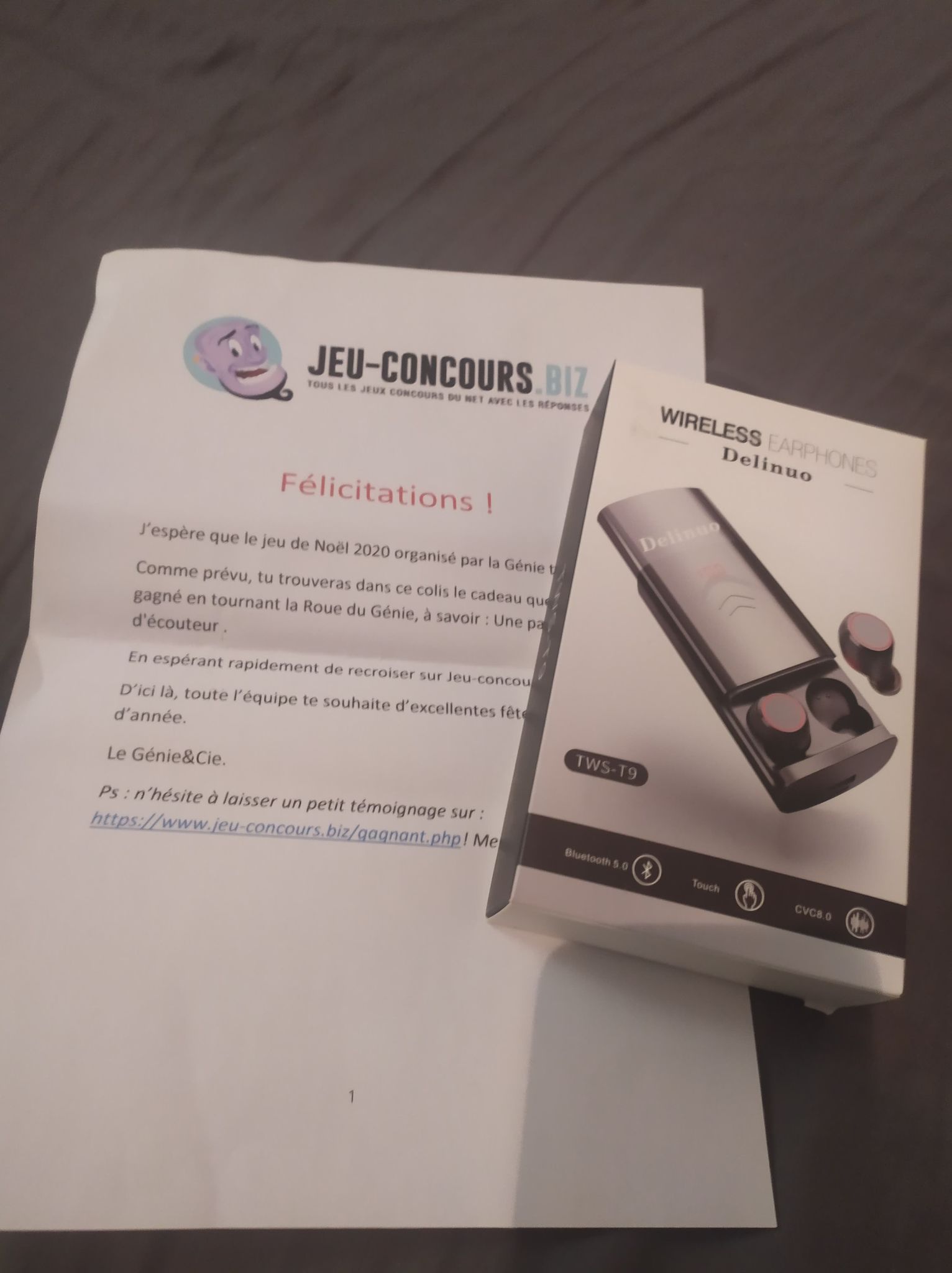« Merci au génie, je suis ravie d'avoir gagné la paire d'écouteurs. »