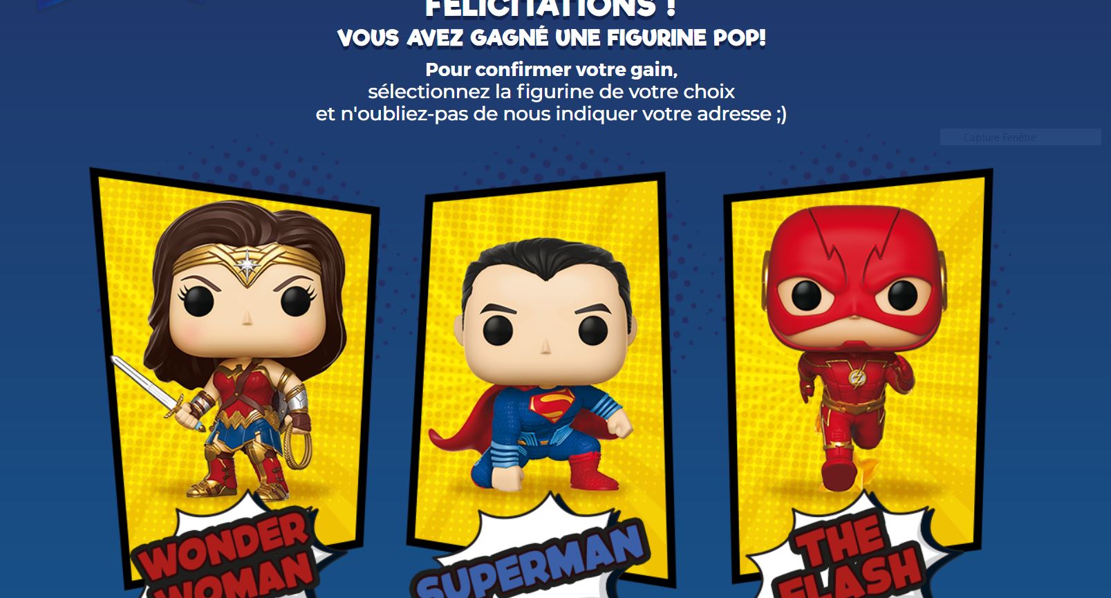 Vous recevrez votre figurine Funko Pop ! Wonderwoman à l'adresse indiquée lors de votre participation dans un délai de 6 à 8 semaines.