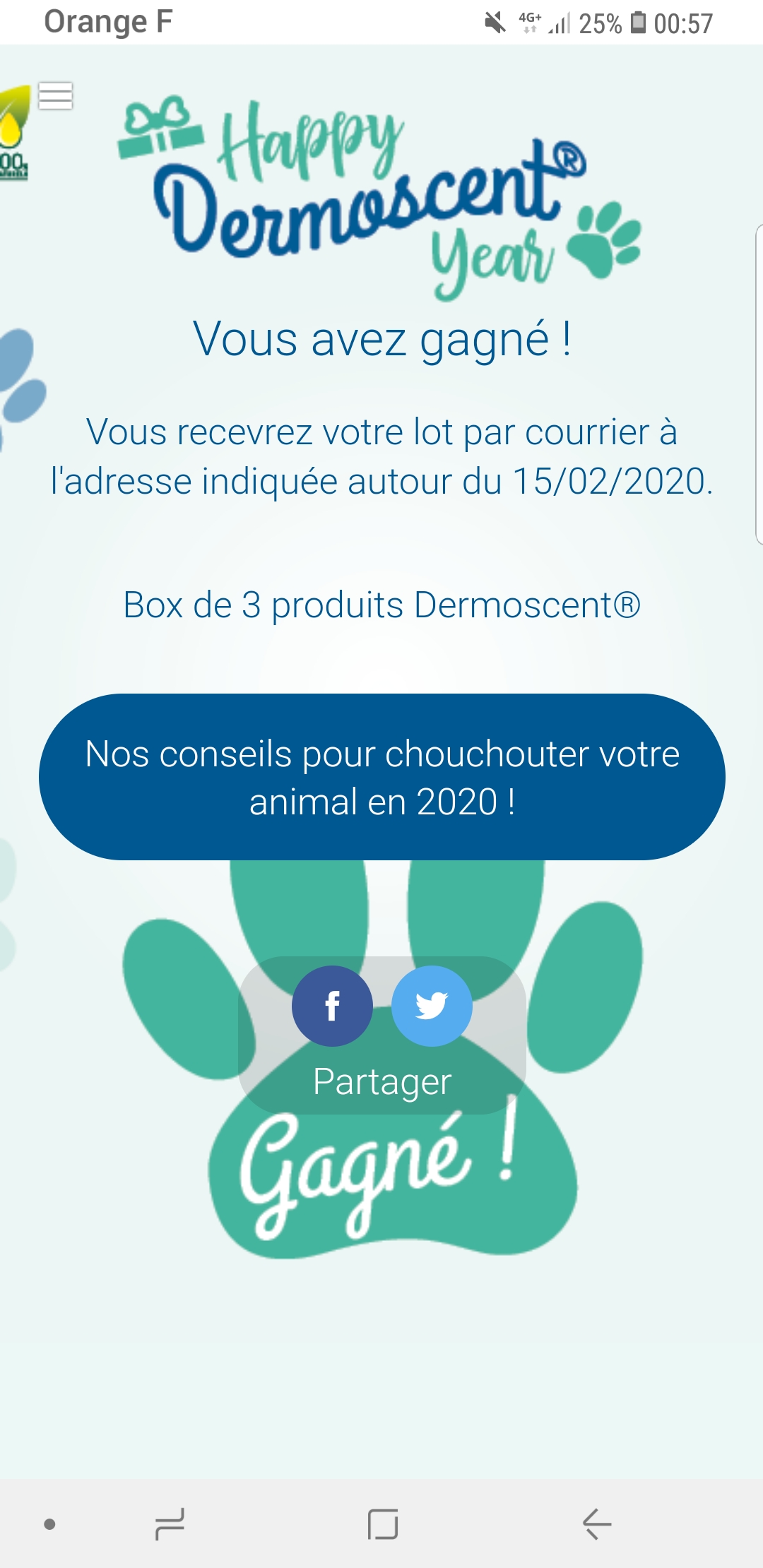 « Gagné à l'instant gagnant une box de 3 produits pour chien bio !