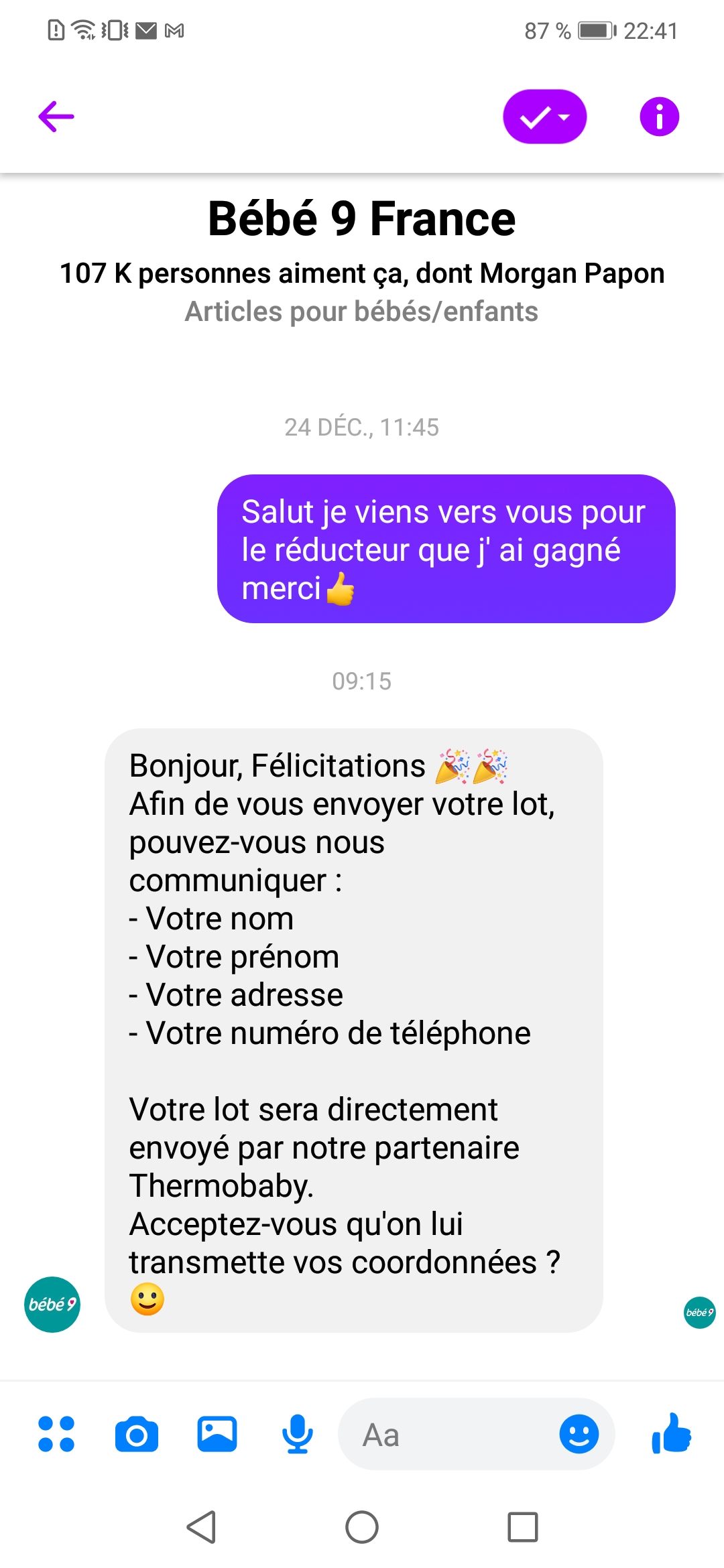 « Gagné sur concours Facebook avec bébé 9 ? »