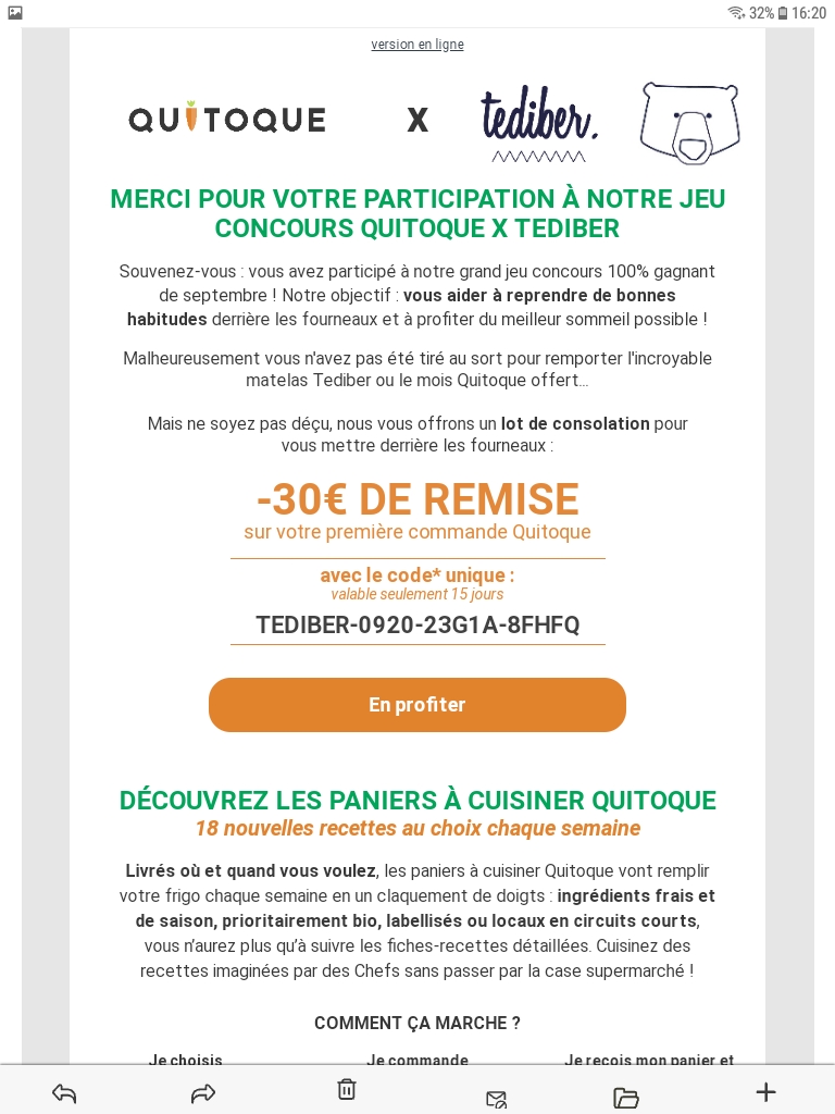 Cadeau gagné : 30€ de remise quitoque