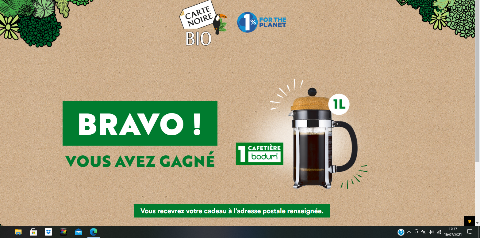 Merci à Nico notre webmaster, CARTE NOIRE et jeu-concours.biz. »