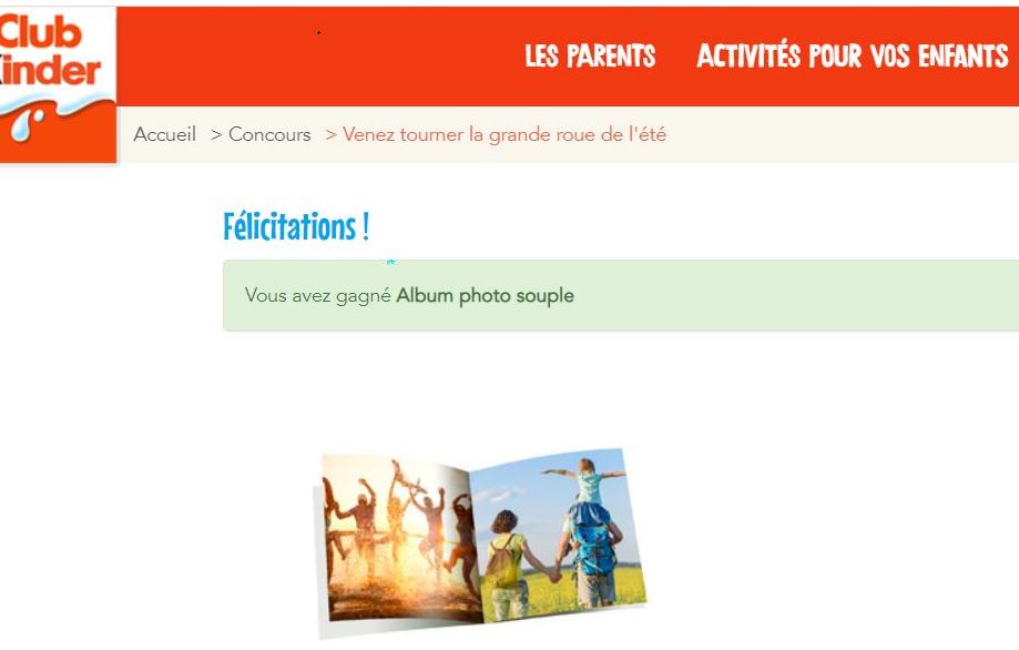 « Par le Club Kinder, gagnée avec mes points sur le site. »