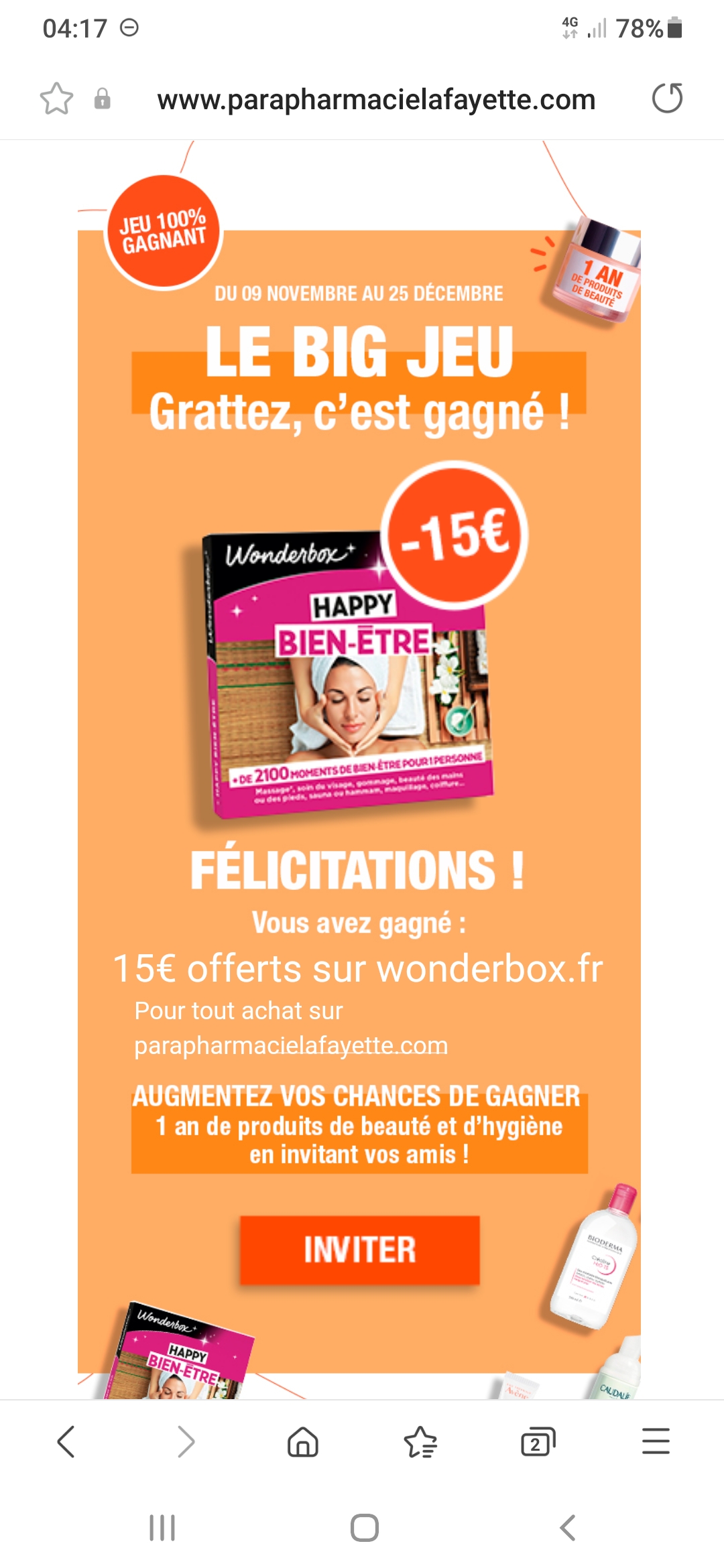 Gagné par Solene50 il y a 4 ans« Pour tout achat sur parapharmacielafayette.com. »