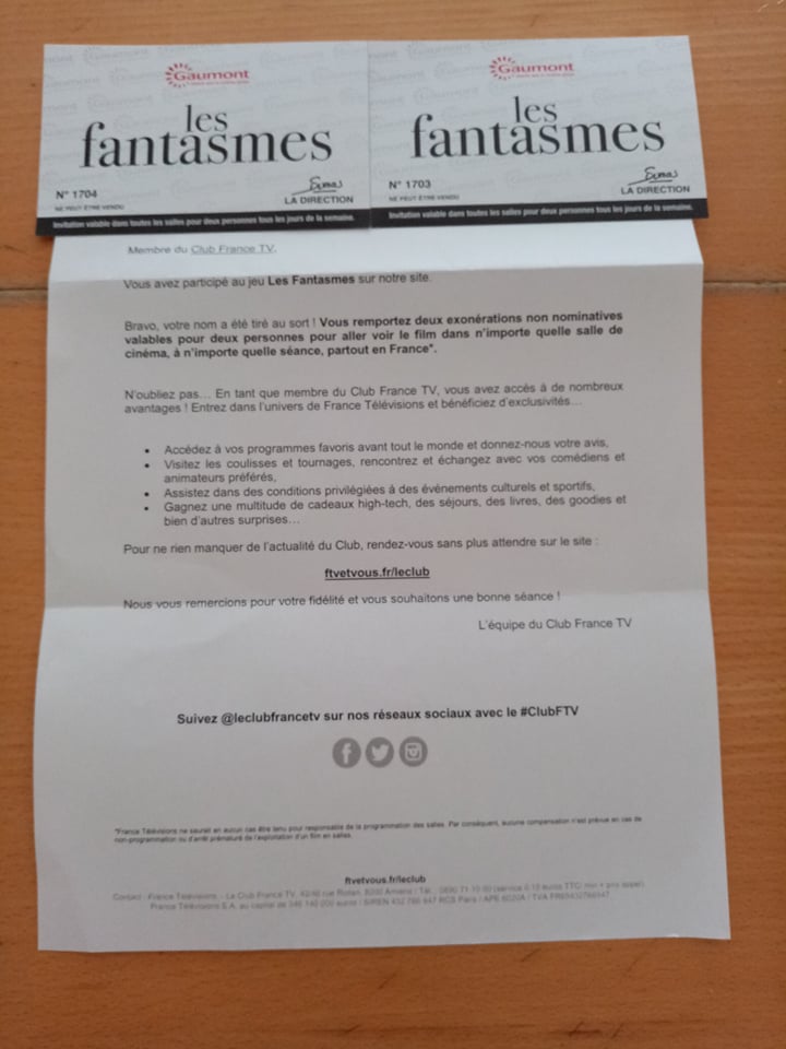 Gagné par Sissifranz2301 il y a 4 ans« Recu deux places de cinéma pour aller voir "C'est quoi ce papy".