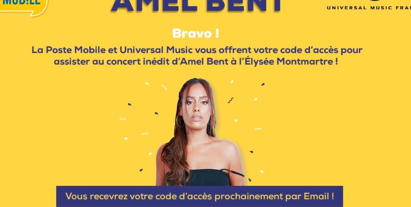 Gagné par carojugy34 il y a 4 ans« Concert privé Amel BENT avec La Poste Mobile. »