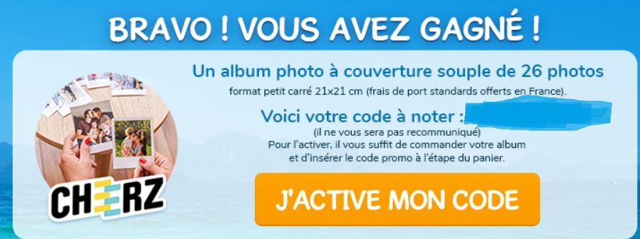 Reçu aujourd'hui un mail avec la carte cadeau Cheerz que j'ai gagné aux IG glacés de Ma Vie en Couleurs, trop contente ! Je vais pouvoir faire imprimer de beaux souvenirs de vacances