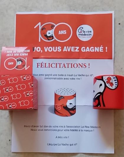 « Mail reçu ce jour, gagné une boîte â Meuh !!!! Merci au génie et à la vache qui rit ? »