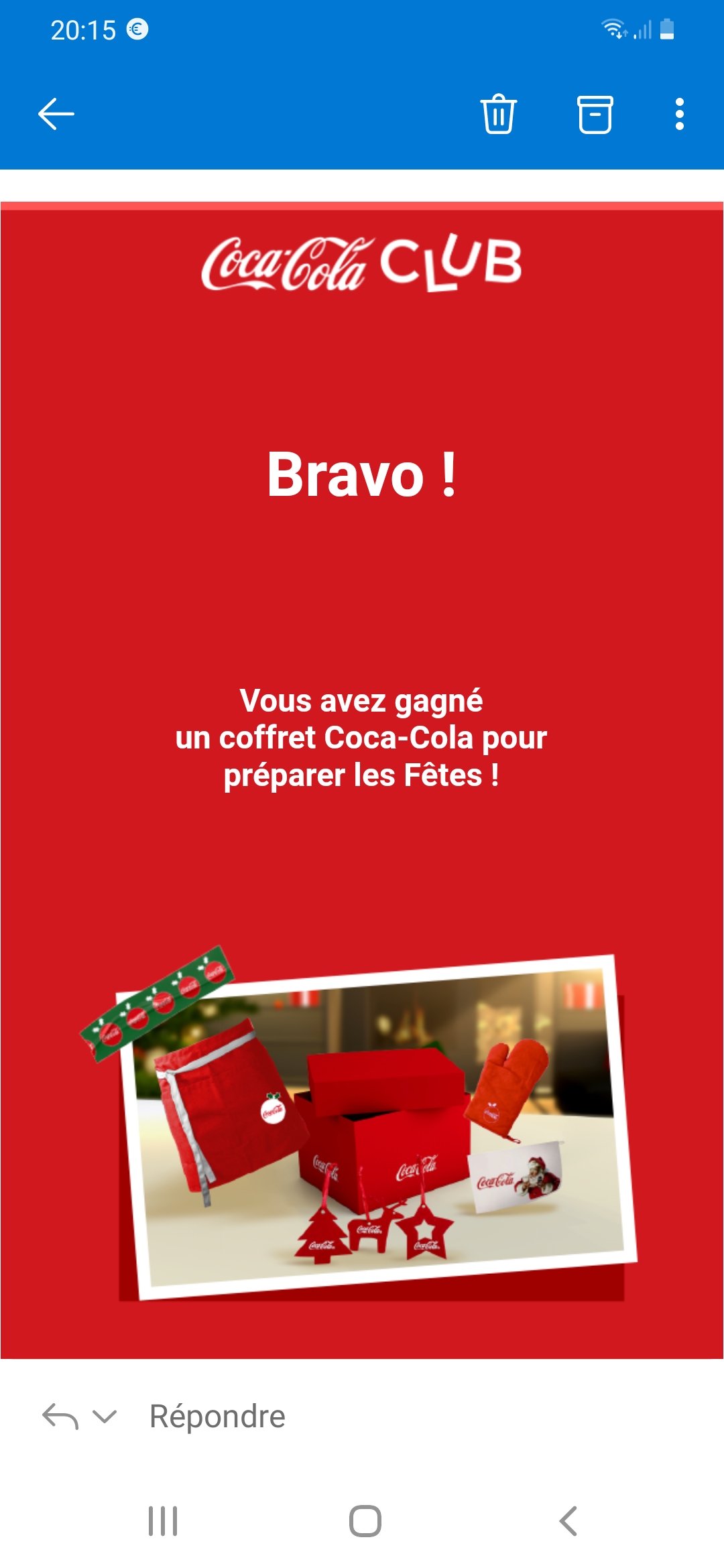 Gagné par linon3 il y a 3 ans« Reçu ce message, suite concours facebook :