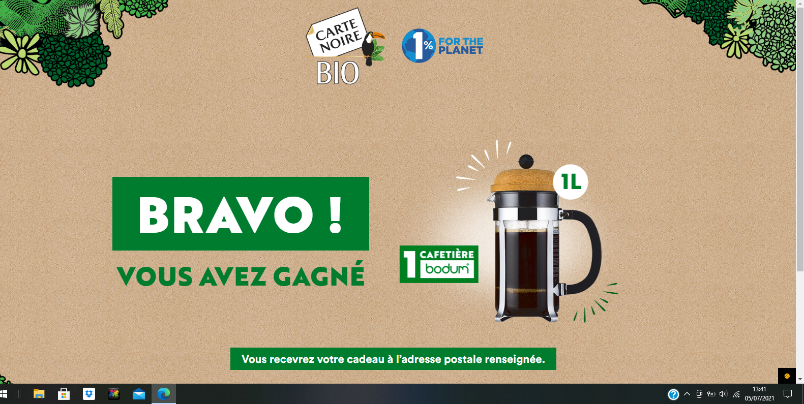 Gagné par nali il y a 4 ans« Reçue une cafetière Bodum par Carte Noire. Merci à eux et au Génie ?♂️ »