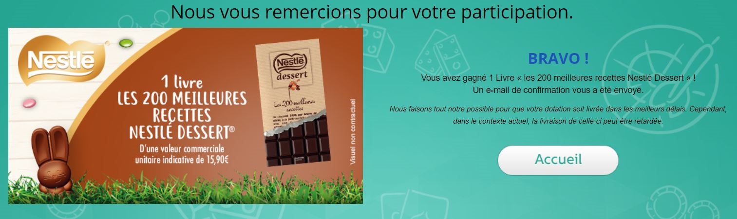 « Gagné avec le petit basque aux instants gagnants... Merci le petit basque et notre bon génie. »
