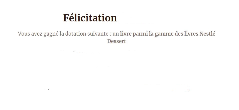 Pour faire suite à votre participation à notre jeu du mois de décembre, vous avez été tirée au sort et avez remporté