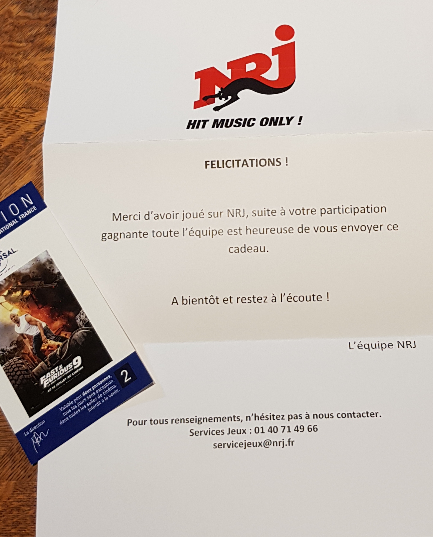 « Surprise du jour dans la boite aux lettres, merci NRJ et merci Genie ? »