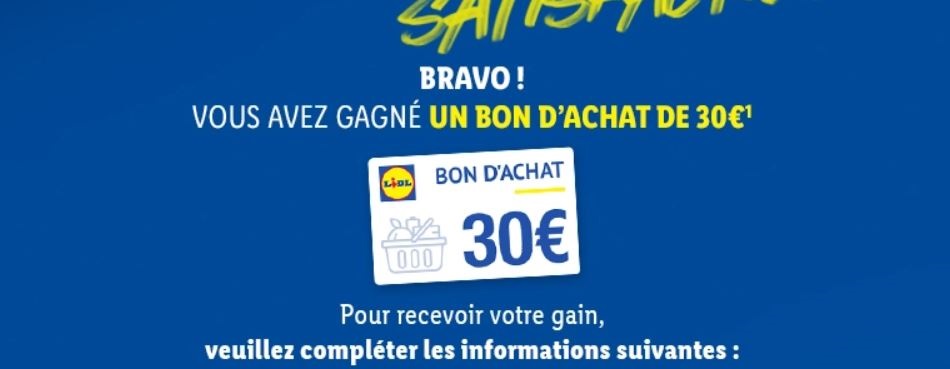 « J'ai reçu un bon cadeau de 30 € au tirage au sort chez lidl »