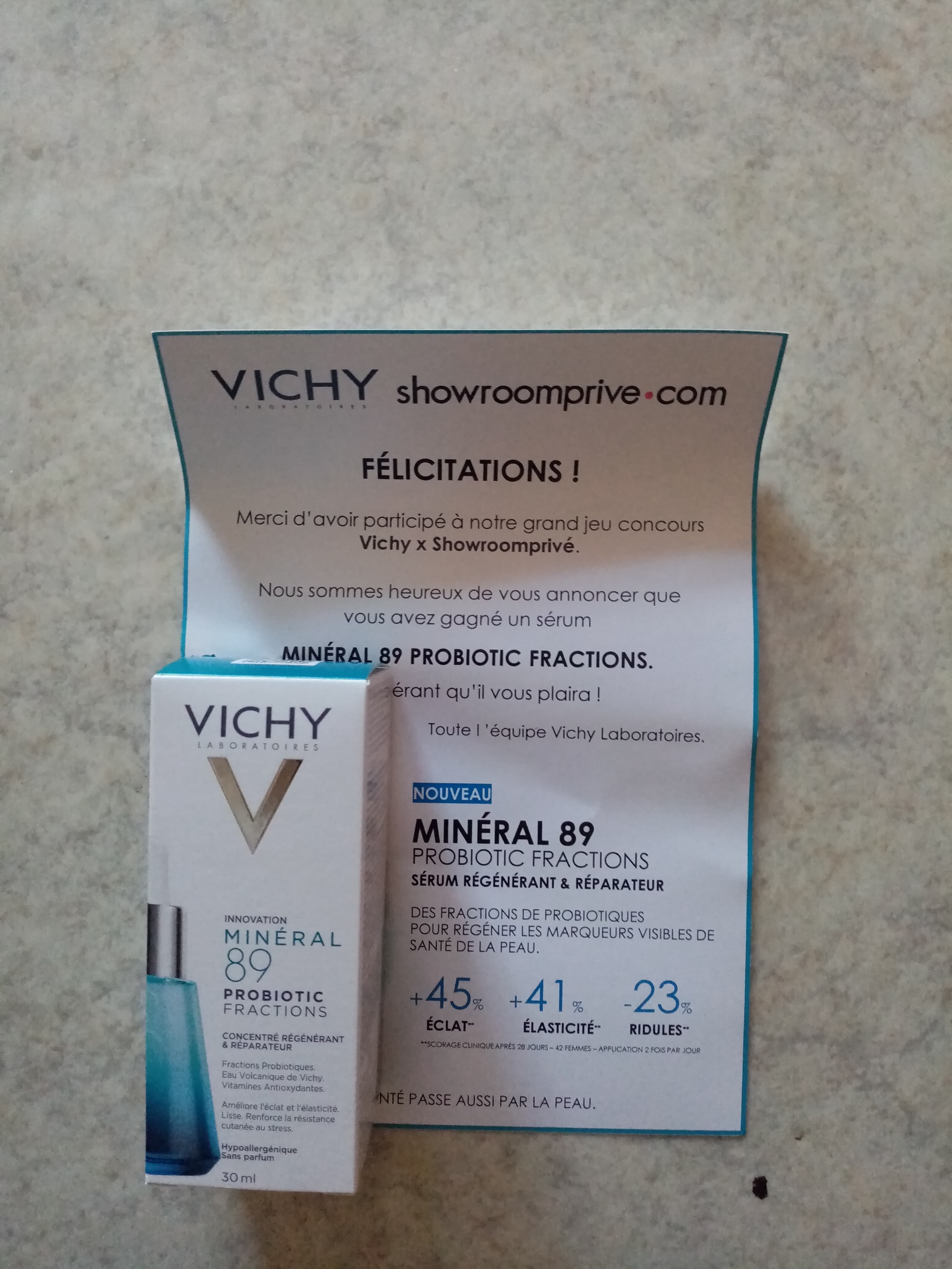 « Gagné un lot de soins hydratant. »