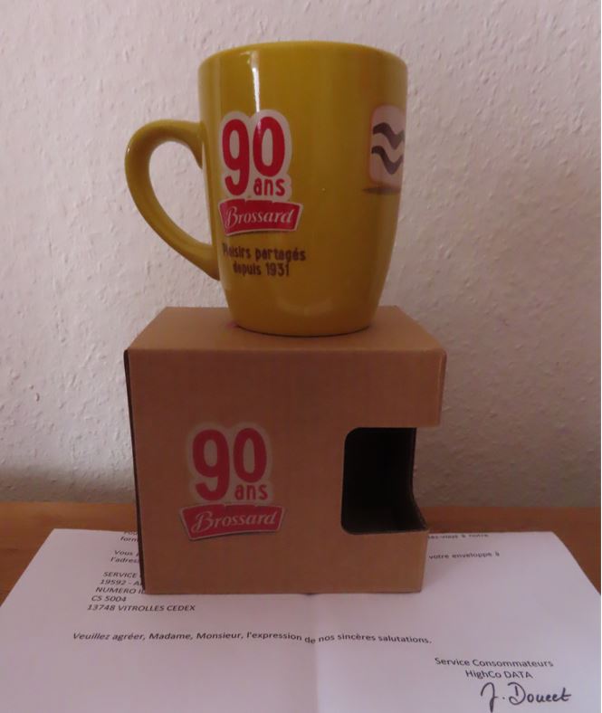 « Merci pour ce premier mug de Papy Brossard arrivé jusqu’à ma boîte dans embûches. Merci ? mon bon Génie et ses Korrigans. Beau week-end à tous au chaud »