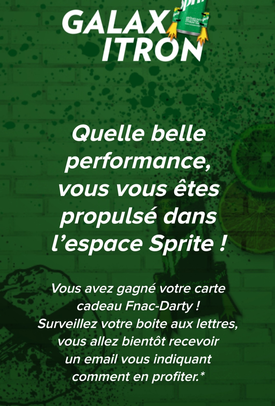 « Gagné à l'instant gagnant Coca-Cola. Merci à eux et à nôtre bon génie. »