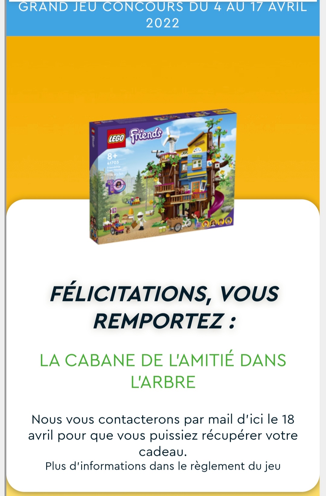 « Gagné une boite de Jeu LEGO "La cabane de l'amitié dans l'arbre" »