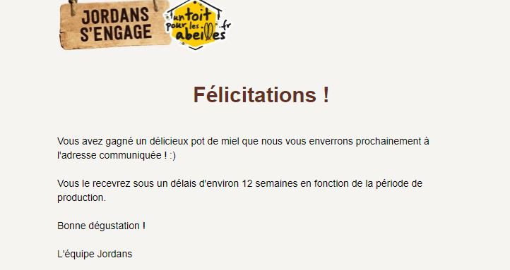 « Félicitation vous avez gagné 4 places pour un parc d’attraction suite à votre participation au jeu de l’oie Pasquier. »