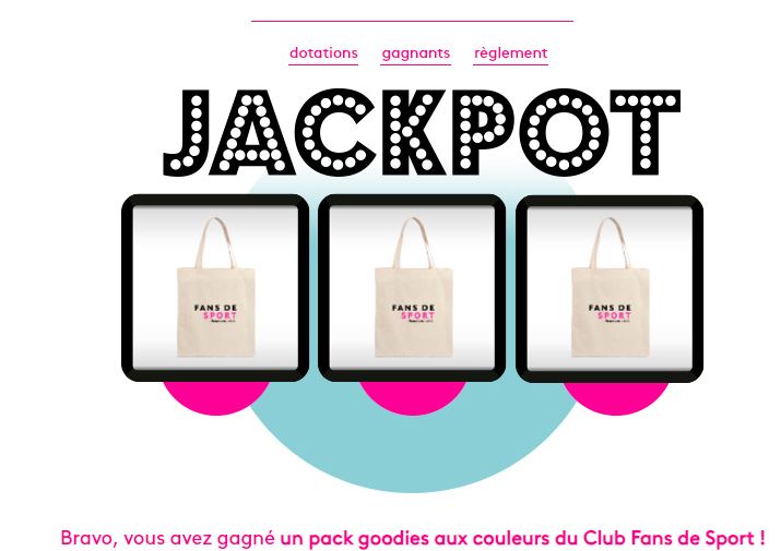Nous avons le plaisir de vous confirmer que vous venez de remporter un pack goodies aux couleurs du Club Fans de Sport.