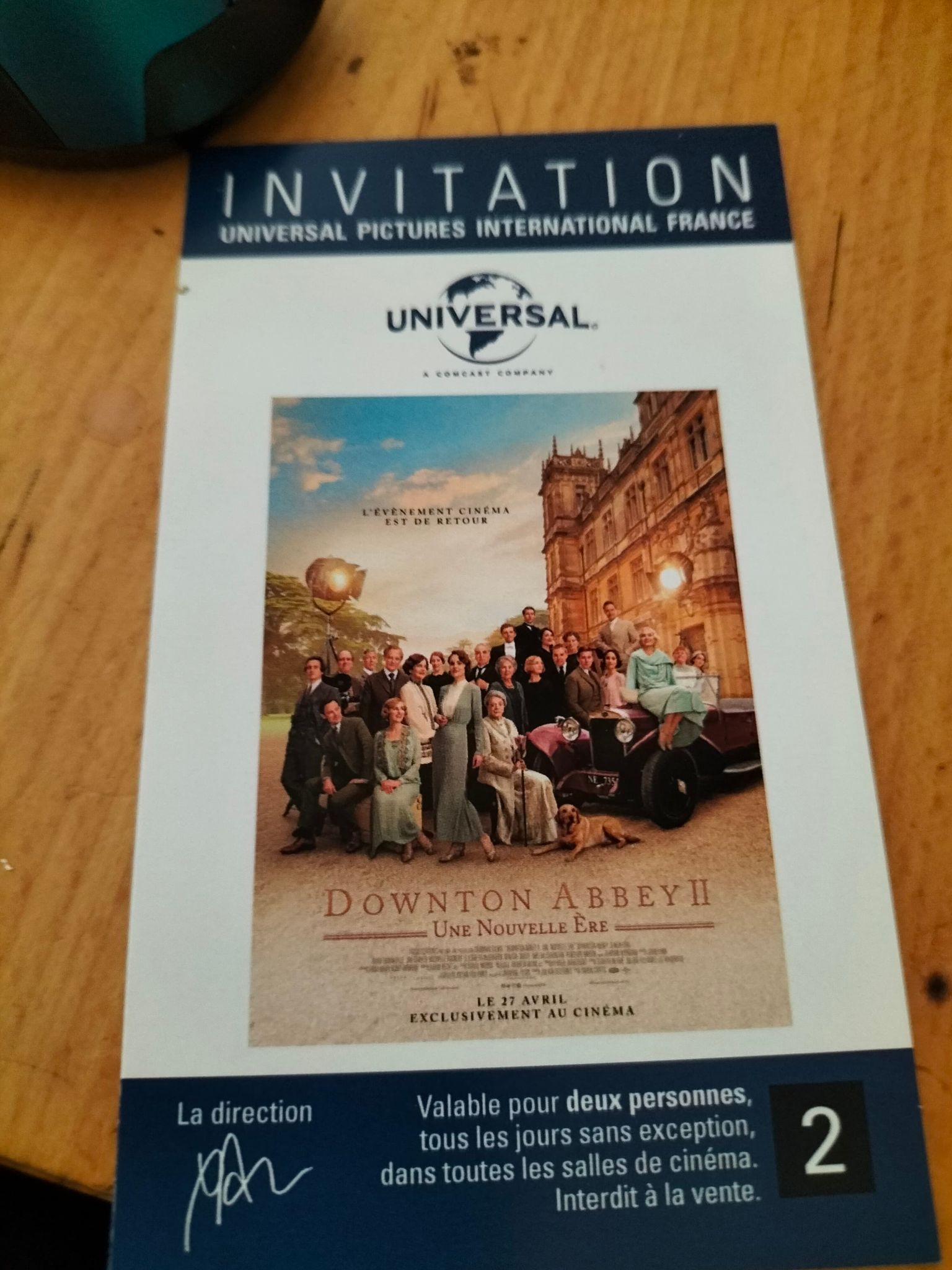 « Reçu ce jour deux invitations pour le film "Qu'est-ce qu'on a fait au Bon Dieu 3". Merci à OCS et au génie. »