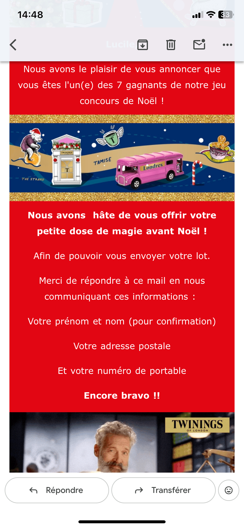 Je viens d’apprendre que j’ai gagné une wonderbox et du thé avec un concours directement sur le site Twinnings 🥰🥰🥰 »