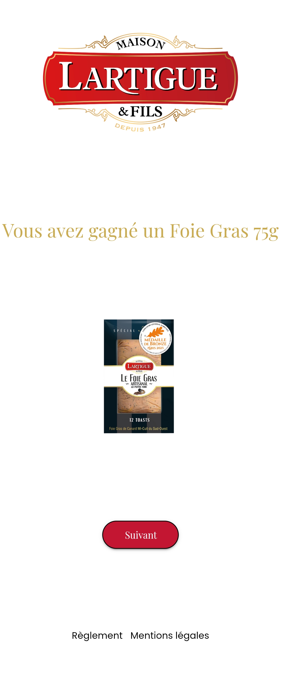 Gagné par Milou80 il y a 1 sem« Gagné aujourd'hui un Foie Gras au calendrier de l'avent