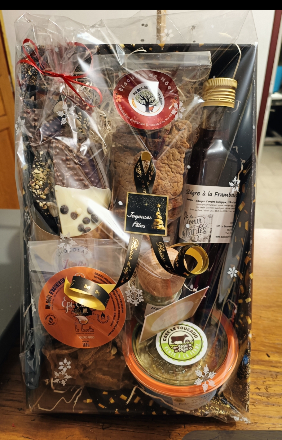 -1 lot gourmand, 1 bouteilles cassis Héritier guyot, 1 fromage epoisse2 pots de cancoilotte, 1 bouteille de vin du jura, 1 bouteille de kirsh.