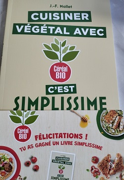 « Reçu un petit livre Simplissime x Céréal Bio de 45 pages avec 21 recettes ! Je m'attendais à un gros livre oops, mais les recettes sélectionnées mettent l'eau à la bouche donc je vais tester