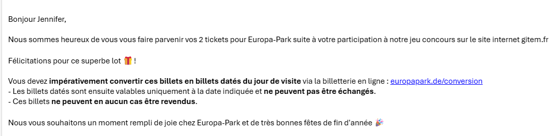 Du coup, j'ai eu mon 5e gain notable cette année : 4 entrées au Parc Astérix valables jusqu'à fin septembre 2026.