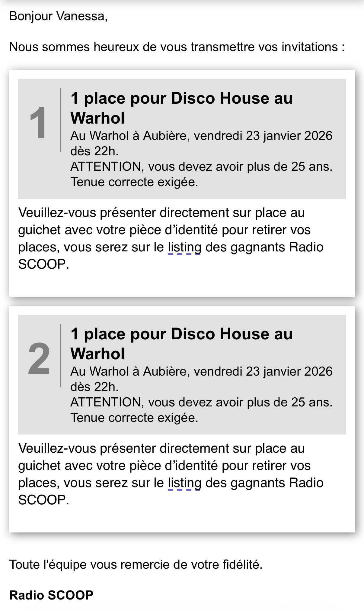 Cadeau gagné : 2 entrées au Warhol