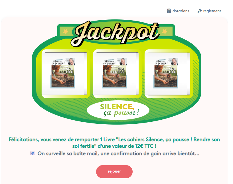 Ceci dit , j'ai rejoué et je suis tombée sur le jackpot au 3ème essai