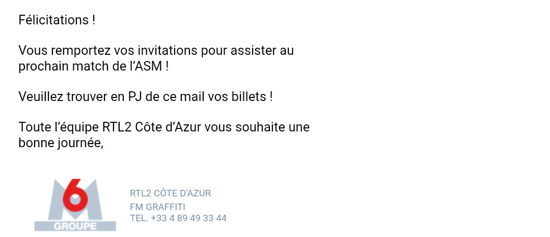 « 2 billets pour suivre une rencontre de Ligue 1 au Stade Louis II. Merci RTL2 ! »