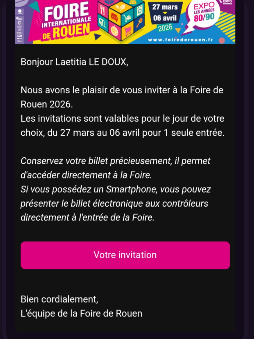 « J'ai gagné 2 entrées pour la foire de Rouen!