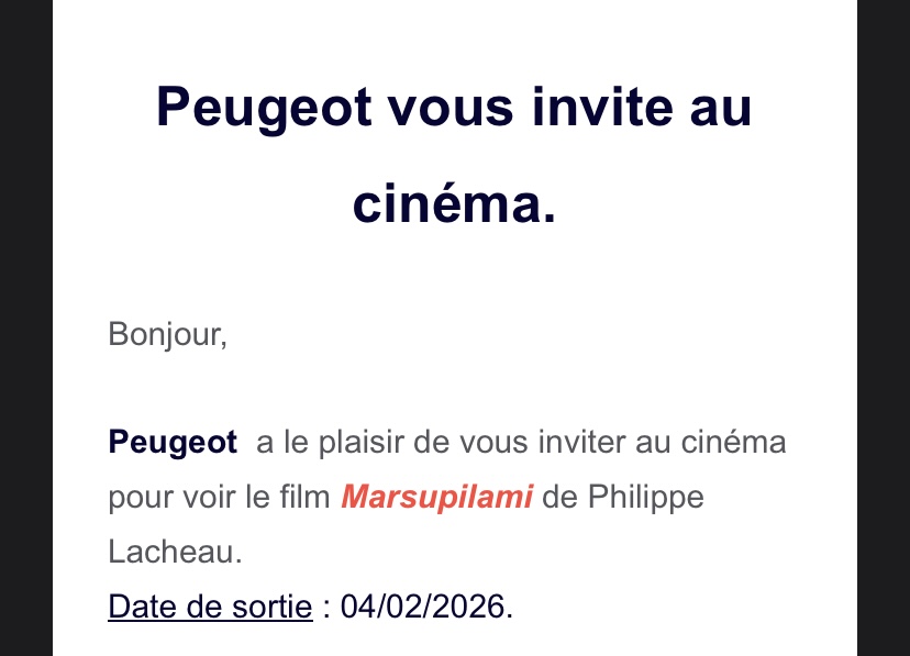 « Gagné grâce à Peugeot !! Merci le Génie, ça fait plaisir de gagner