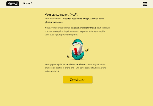 « J'avais joué le mois dernier sur l'IG du jeu Legrand pour des prises de courant quand soudain, le mot "Félicitations" tant espéré de tous les concouristes du monde est apparu sur mon écran.