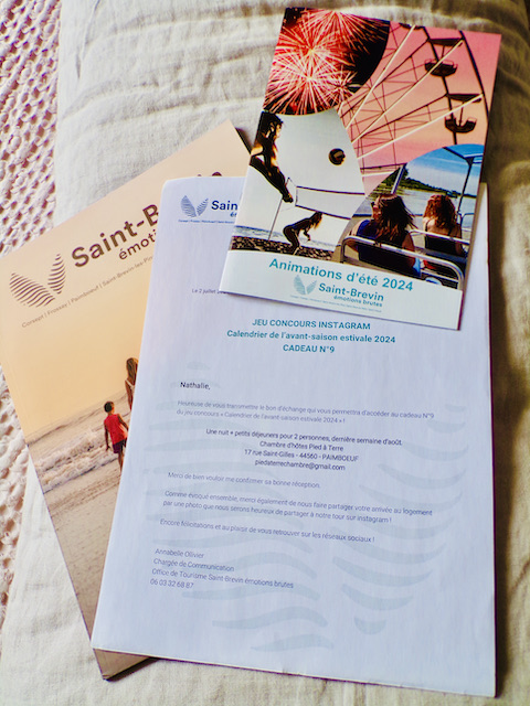« Début juillet, j'ai gagné une nuit en chambre d'hôtes sur la page Instagram de St Brévin Tourisme. Il fallait que la nuit soit prise uniquement la semaine du 19 au 23 août, j'ai donc profité d'une journée de relâche pour y aller avec ma maman hier.