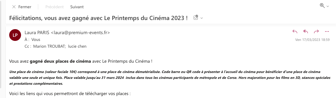 J'ai gagné ce concours sur la page Instagram de UGC Cinéma, et il était indiqué que je gagnais l'intégrale de la saga en coffret blu-ray + l'affiche du film.