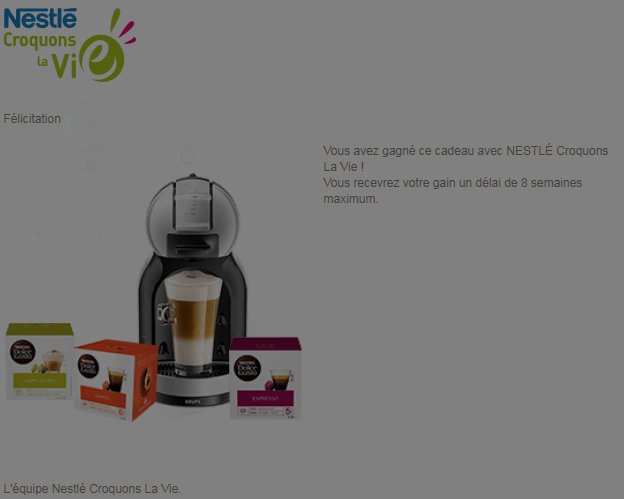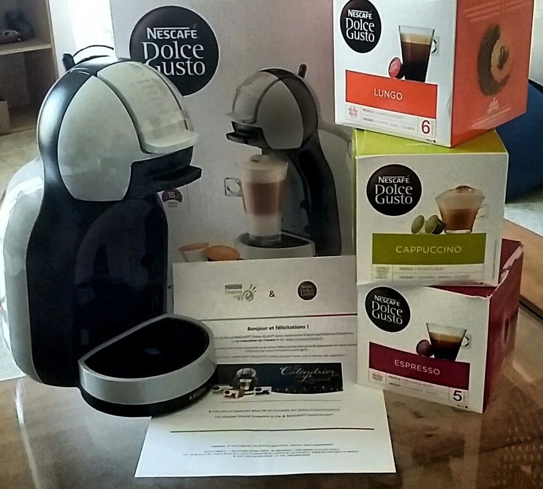 « Je suis trop trop contente!!!! Reçu aujourd’hui ma dolce gusto et ses 3 boites de capsules. Merci a NESTLÉ Croquons La Vie ! Avec dolce gusto et au Génie. »