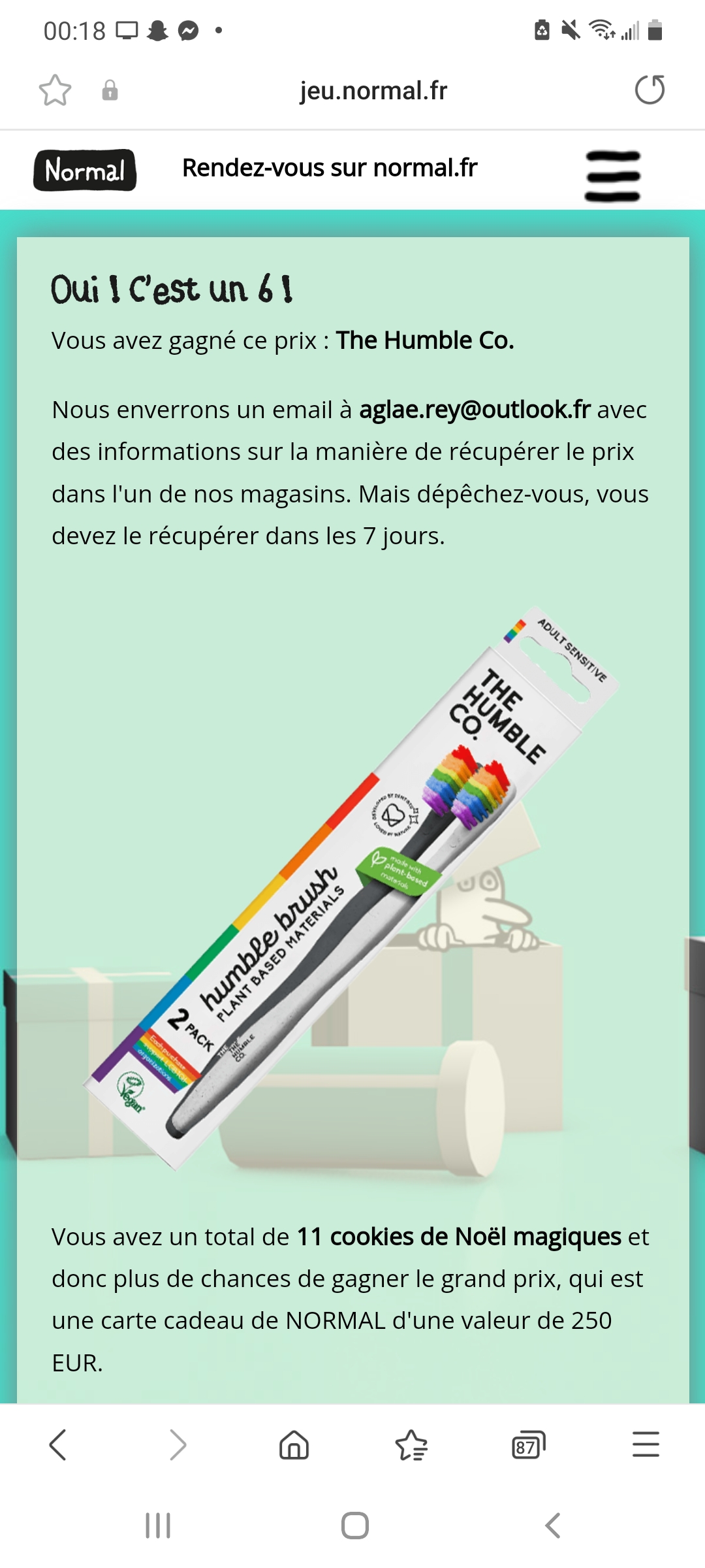 Cadeau gagné : 2 brosses à dents Normal
