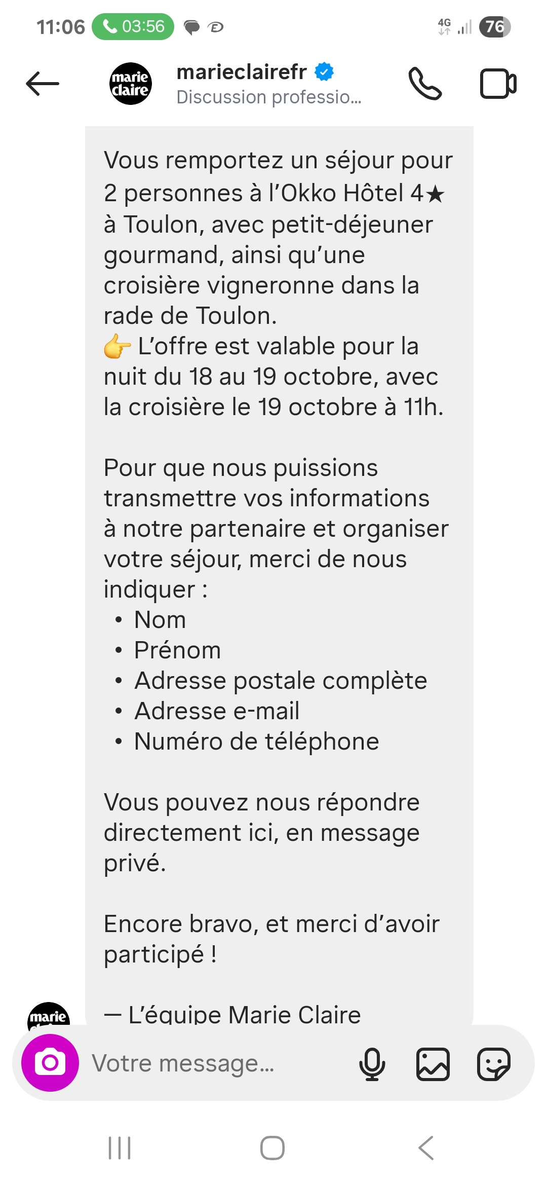 « Quelle joie d'avoir enfin gagné un concours depuis des mois d'attente, et le lot est super! Merci à Marie Claire sur Insta et au Génie ! »