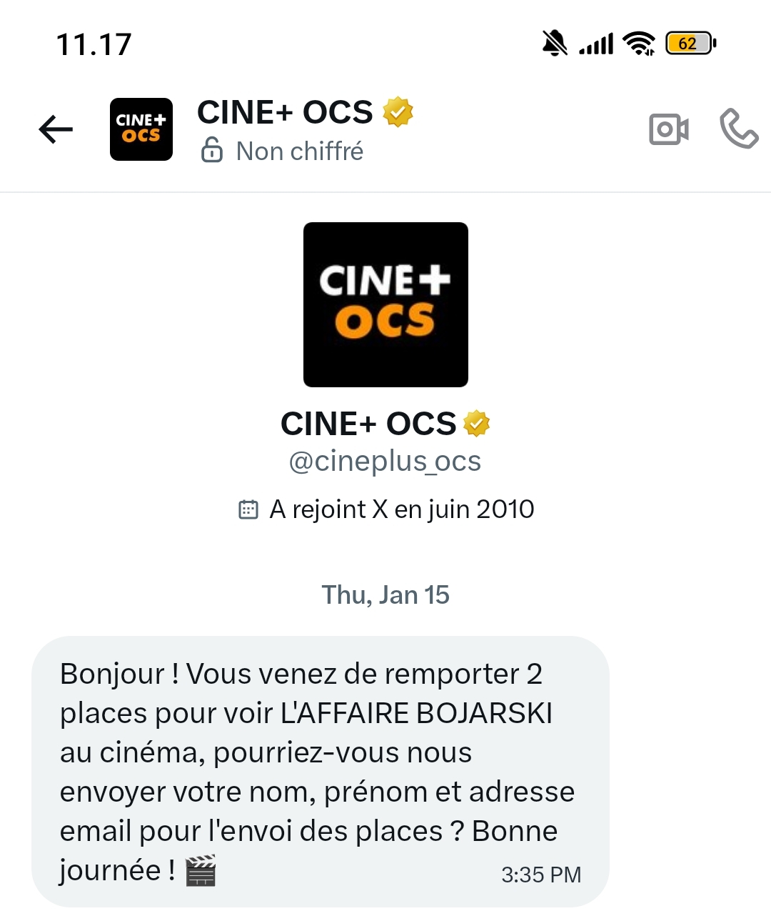 « J'ai juste répondu à une question assez rigolote sur le compte Insta de We love cinéma, qui m'a beaucoup amusée, et j'ai gagné deux places de cinéma à utiliser où je veux pour le film que je veux. Grosse surprise et trop contente ! »
