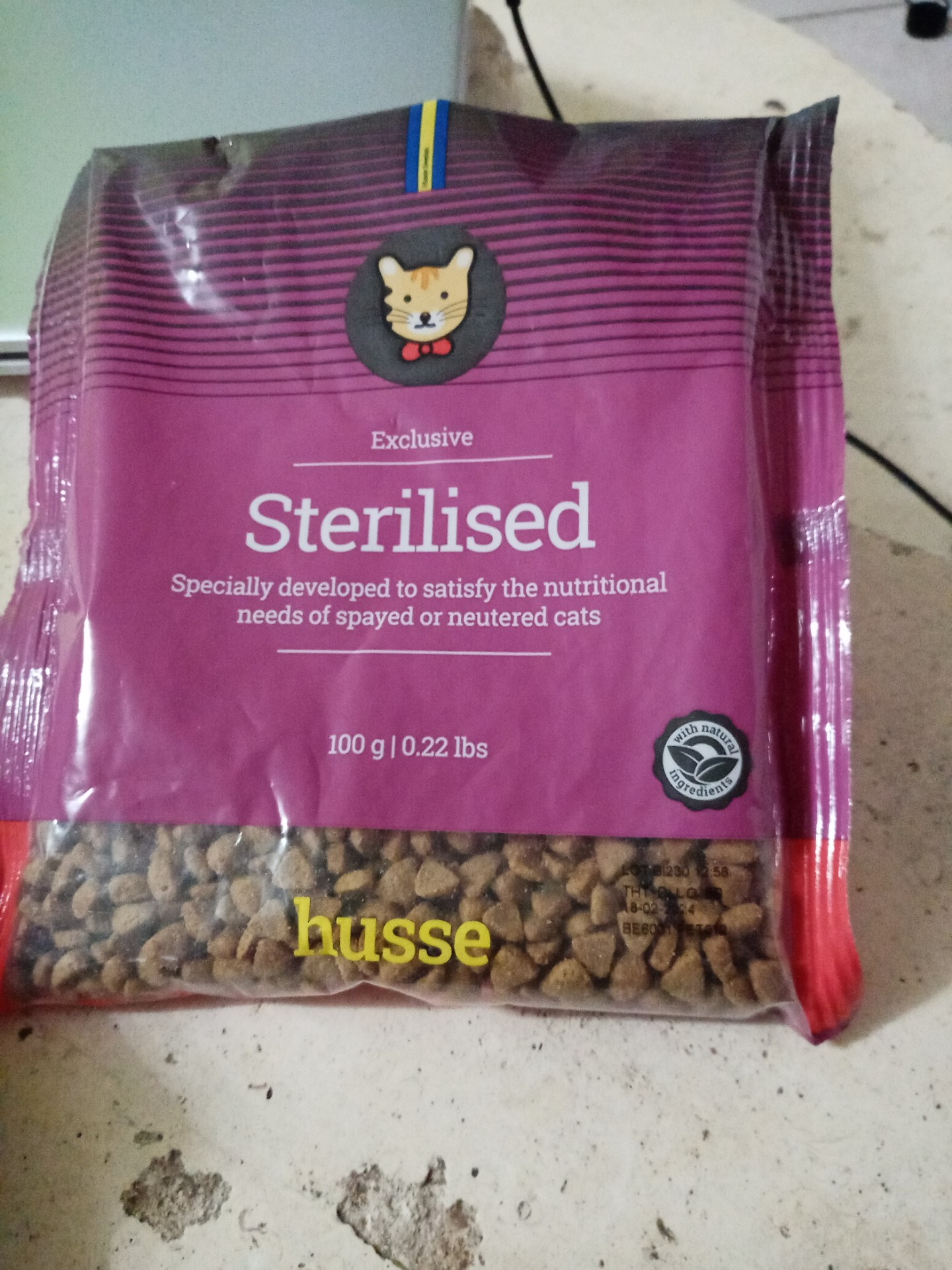 « Reçu un paquet de 100 g de croquette pour chat.