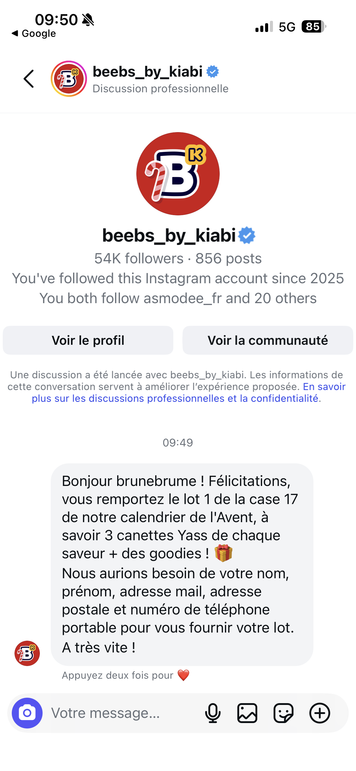 « Mon premier cadeaux gagné ! Je suis toute émue. »