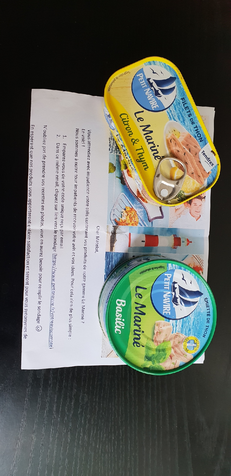 « Reçu ce matin 2 boîtes de thon Petit Navire à tester... »