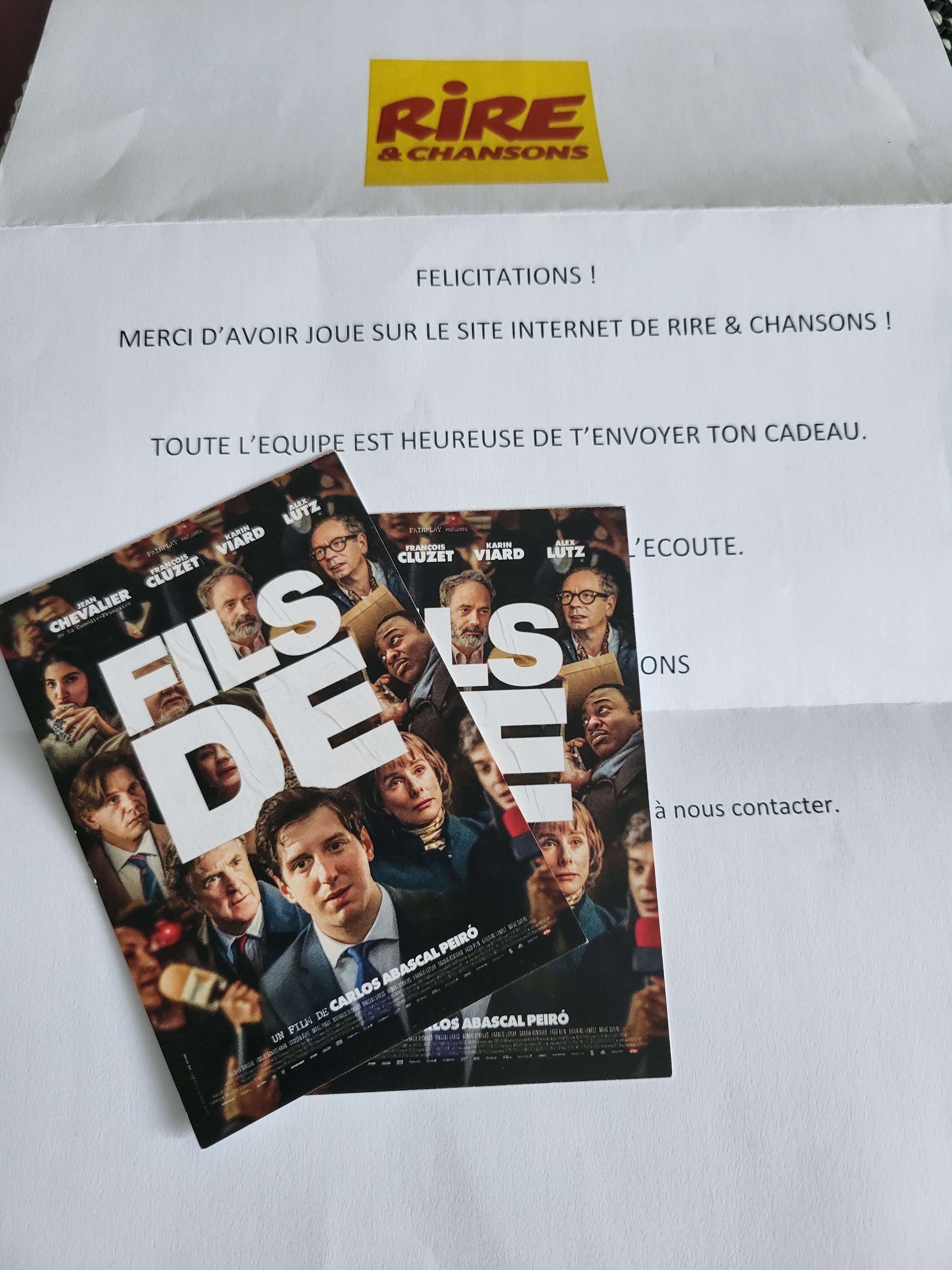 « Et on continue dans le cinéma Reçu 2 places pour le film "Fils de" avec Rire et Chansons. »