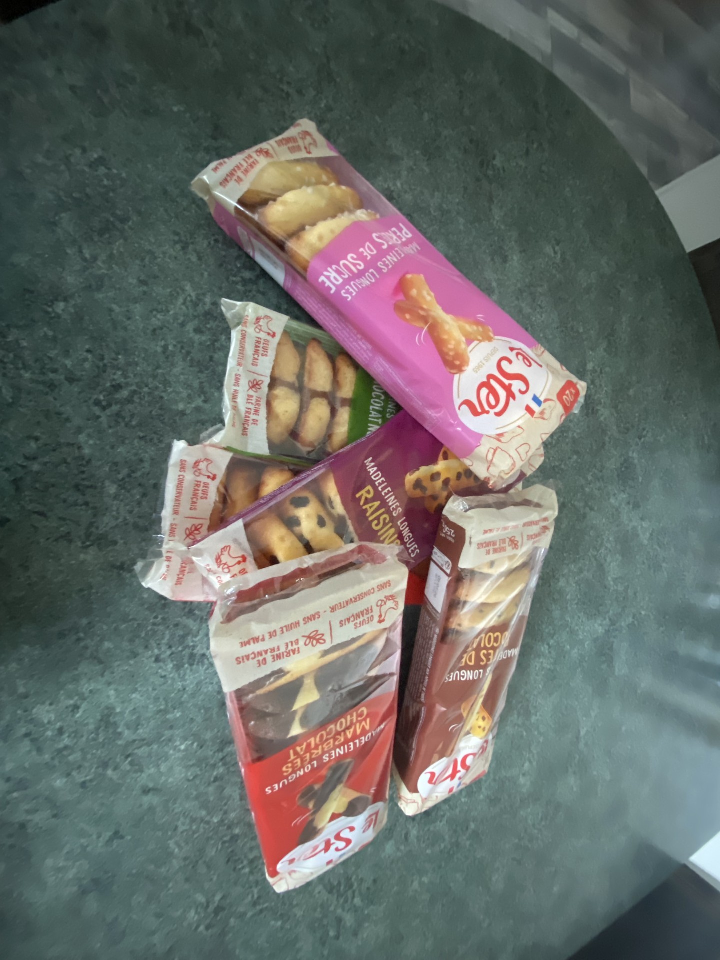 « Reçu un gros lot de madeleines savoureuses de Bretagne, pépites de sucre, marbrées, chocolat, fruits secs ....Merciiii le Stern pâtisseries savoureuses de qualité pour le grand bonheur des petits et des grands gourmands ! »