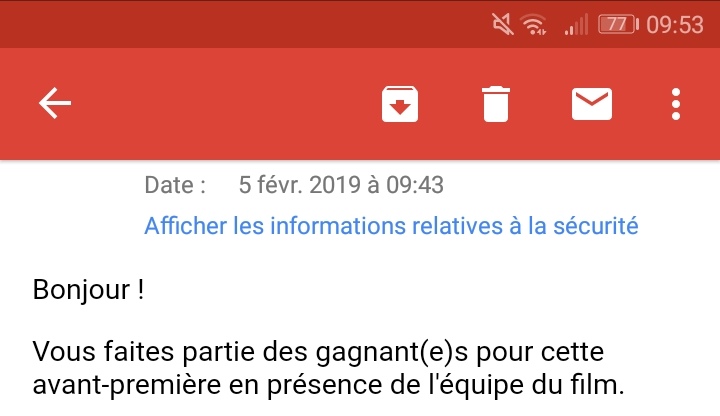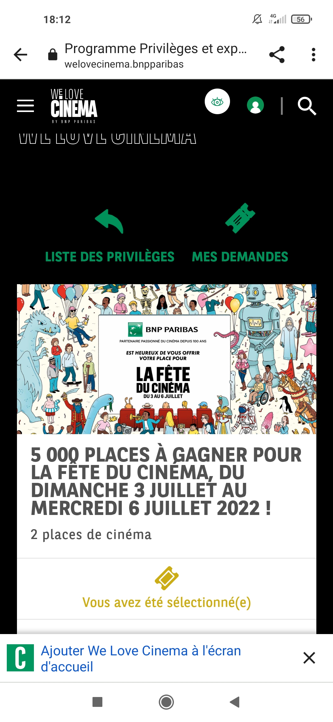 « Super merci BNP Paribas et le génie. Reçu par mail, trop hâte d'être à la fête du cinéma. »